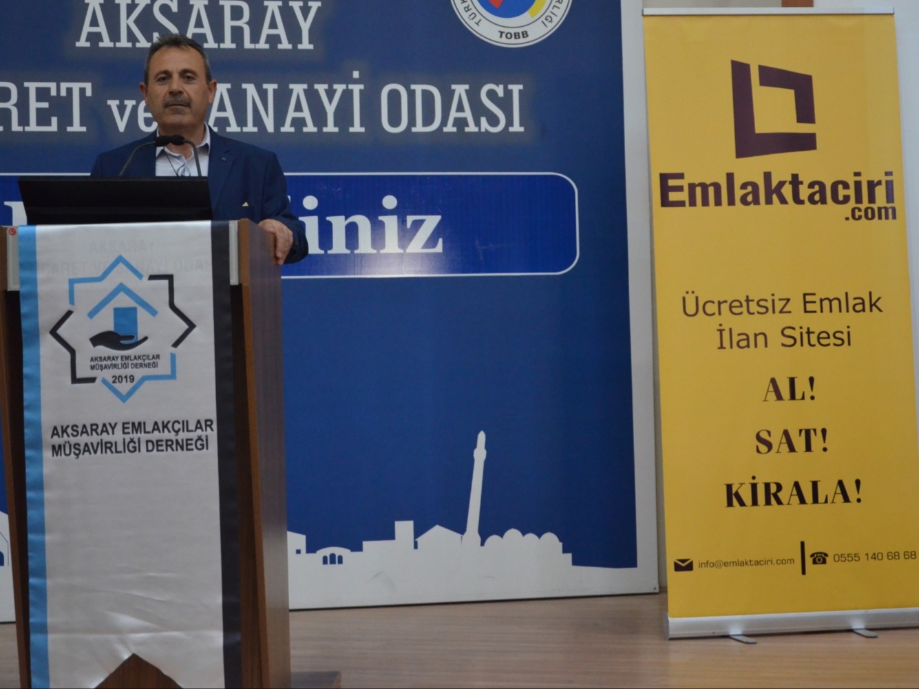 Aksaray emlak sektörünü bir araya toplamak için yeni kurulan AKSEMDER(Aksaray Emlakçılar Müşavirliği Derneği) dernek başkanı seçimi için toplandı. AKSEMDER’ in 03.05.2019 Cuma günü saat 14:00 da Aksaray Ticaret Odası konferans salonunda gerçekleşen toplantısına emlak piyasasına yeni bir boyut getiren ücretsiz emlak ilan sitesi www.emlaktaciri.com da katıldı. Firma yetkilisi sayın Şevket YALÇIN; AKSEMDER ve emlaktaciri.com işbirliğinin devam edeceğini belirtti. Yoğun ilgi gören AKSEMDER başkanlık seçimine aday olarak katılan Fatih KILIÇ ve Uğur AKBULUT arasında adil bir oylama yapıldı. Yapılan seçim sonucunda sayın Uğur AKBULUT başkan olarak seçildi. Türkiye'nin ücretsiz emlak ilan sitesi emlaktaciri.com olarak yeni başkan sayın Uğur AKBULUT’ a başkanlık döneminde başarılar dileriz. AKSEMDER ve emlaktaciri.com olarak tüm katılımcılara teşekkür ederiz.